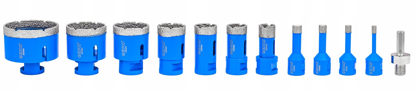 Идеально подходит для проделывания отверстий в таких материалах, как: керамогранит, керамическая плитка, клинкер, плитка и натуральный камень.