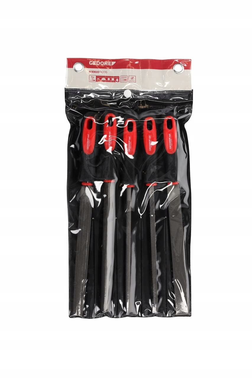 Набор напильников GEDORE красный, 5 предметов, специальная сталь, пластиковый пакет в комплекте, ручка 2-компонентная, красный/черный