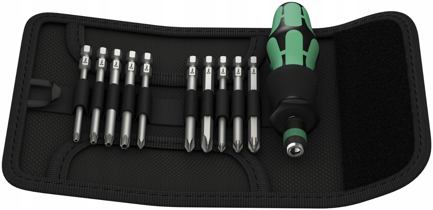 отвертка Wera с быстроразъемной ручкой. Держатель для отверток с системой Rapidaptor. Весь комплект помещается в практичный чехол для ремня в комплект входит эргономичная ручка с ручкой и наконечниками длиной 89 мм.