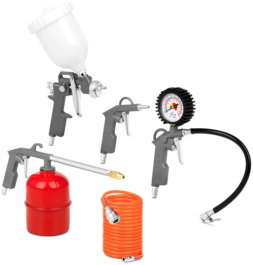 набор инструментов PNMATIC MSW-ASG-SET5 от MSW-это комплект оборудования для компрессора из пяти частей с широким спектром применения. Он состоит из краскораспылителя с выпускной чашкой, пистолета для сжатого воздуха, краскораспылителя с чашкой, шинного насоса с манометром и спирального шланга. Таким образом, вы получаете все необходимое для оптимального и различного использования компрессора. Высококачественный комплект подходит как для профессионального использования в мастерских, так и для частного гаража или собственного сада.п>