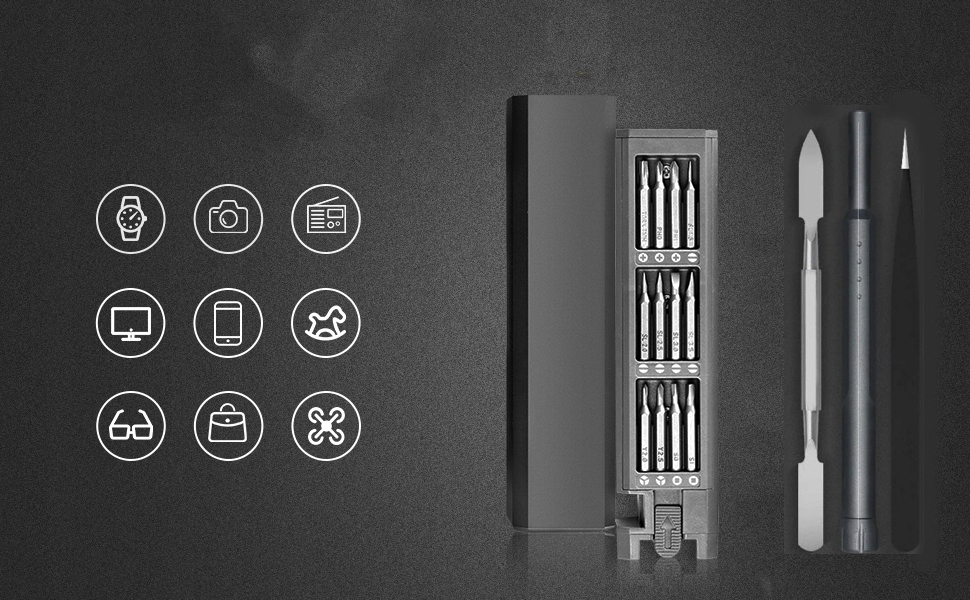 Набор для прецизионного ремонта таких устройств, как часы, фотоаппараты, телефоны, планшеты, навигаторы, ноутбуки и всех других устройств данного типа.