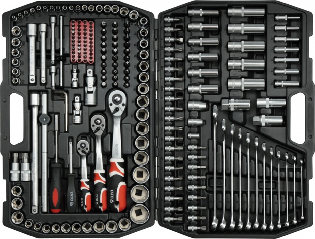 Профессиональный набор инструментов, который разработан с учетом потребностей специализированных автомобильных и механических сервисных центров. Торцевые ключи, а также привод торцевых головок были изготовлены из прочной инструментальной хромованадиевой стали CrV 50bv3. Колпачки изготавливались методом штамповки и перед процессом закалки подвергались калибровке с помощью прецизионных измерительных приборов и контрольных приборов. Колпачки, оснащенные системой as-Drive, увеличивающей максимальный крутящий момент на 25%, при полной защите кромок гаек, колпачки с двухтональной отделкой поверхности. В комплект также входят биты из твердой стали S2. Комплект позволяет выполнять работу, требующую очень больших нагрузок и точности, позволяет выполнять множество сервисных мероприятий, связанных с отвинчиванием и завинчиванием резьбовых соединений различных номинальных размеров. Храповики имеют трехкомпонентную рукоятку и 72 зубца (рабочий ход 5 градусов).п>