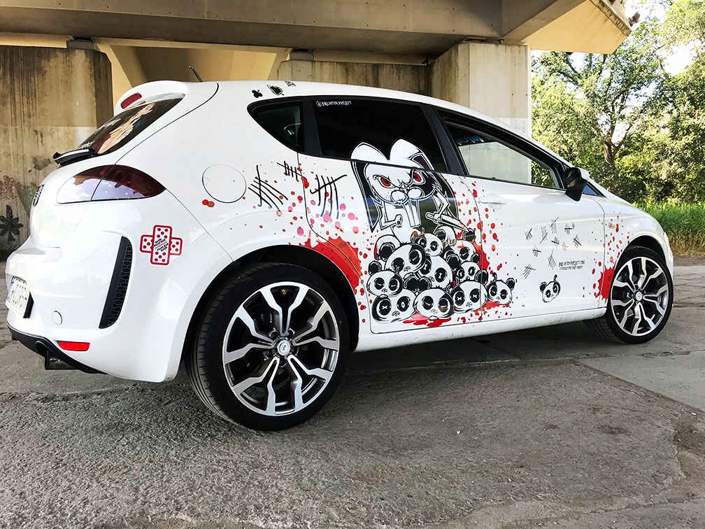 наклейка размером 60 x 52 см. Напечатано на высококачественной пленке, которая подходит для наклеивания на автомобиль-не повреждает краску и не оставляет следов после отслаивания.