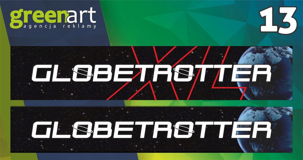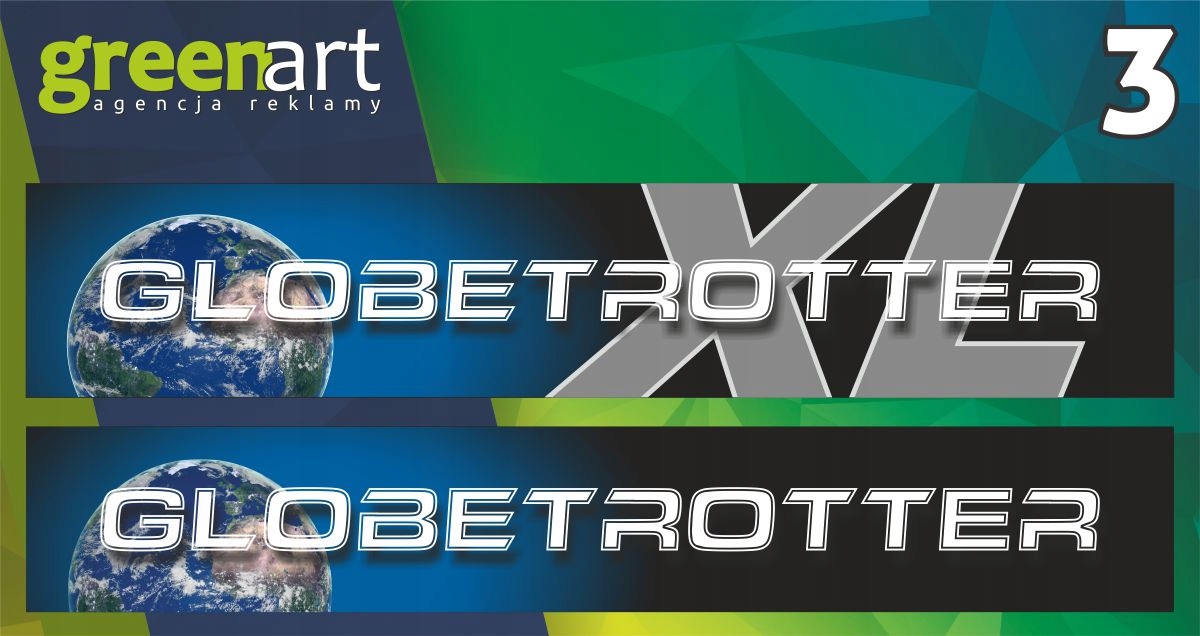 размеры наклейки GLOBETROTTER иGlobetrotter XL : 145 см x 26 см