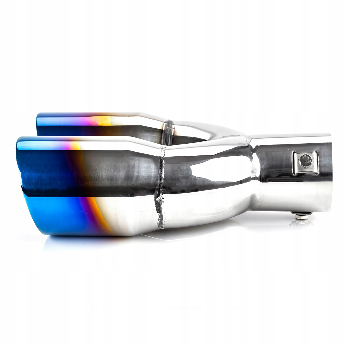 изготовлен из высококачественной кислотостойкой нержавеющей стали универсальный хромированный двойной наконечник глушителя с синей отделкой ("обжиг").