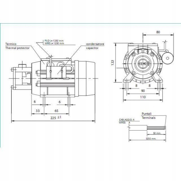 насос MTP 600 приводится в действие электродвигателем 400 в 50 Гц, с вентилятором на одной оси и встроенным пусковым конденсатором.
