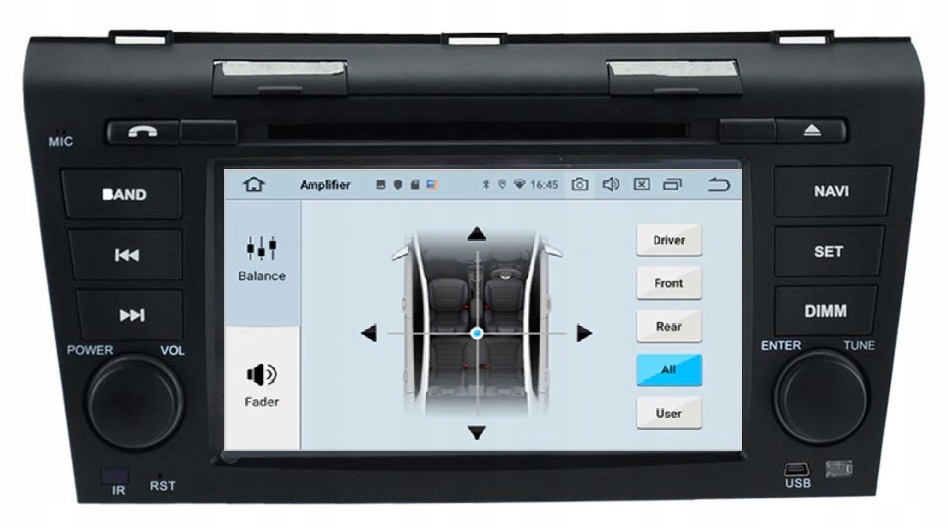 • цифровой звуковой процессор и графический эквалайзер(EQ ) обеспечивают высококачественный звук, который удовлетворит даже самых требовательных любителей музыки! Встроено несколько режимов, определенных эквалайзером (рок, поп, джаз и т.д.), а также была оставлена возможность любой коррекции пользователем. Он имеет функцию LOUDNESS. Радио также имеет опцию FADER, которую мы можем изменить  соотношение звука между отдельными динамиками.