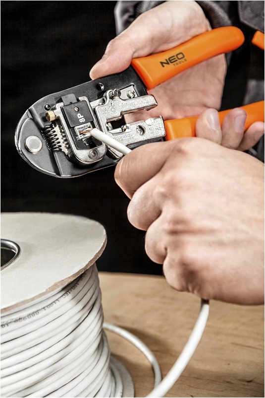 NEO195-миллиметровые плоскогубцы NEO. С сменными головками для обжима наконечников 4P, 6P, 8P. режущие лезвия изготовлены из прочной стали SK5 с твердостью 42-48 HRC. Ручка, покрытая высококачественным пластиком TPR, повышает комфорт работы. Качество инструмента подтверждено сертификатом t& # 220; V и 25-летней гарантией производителя.
