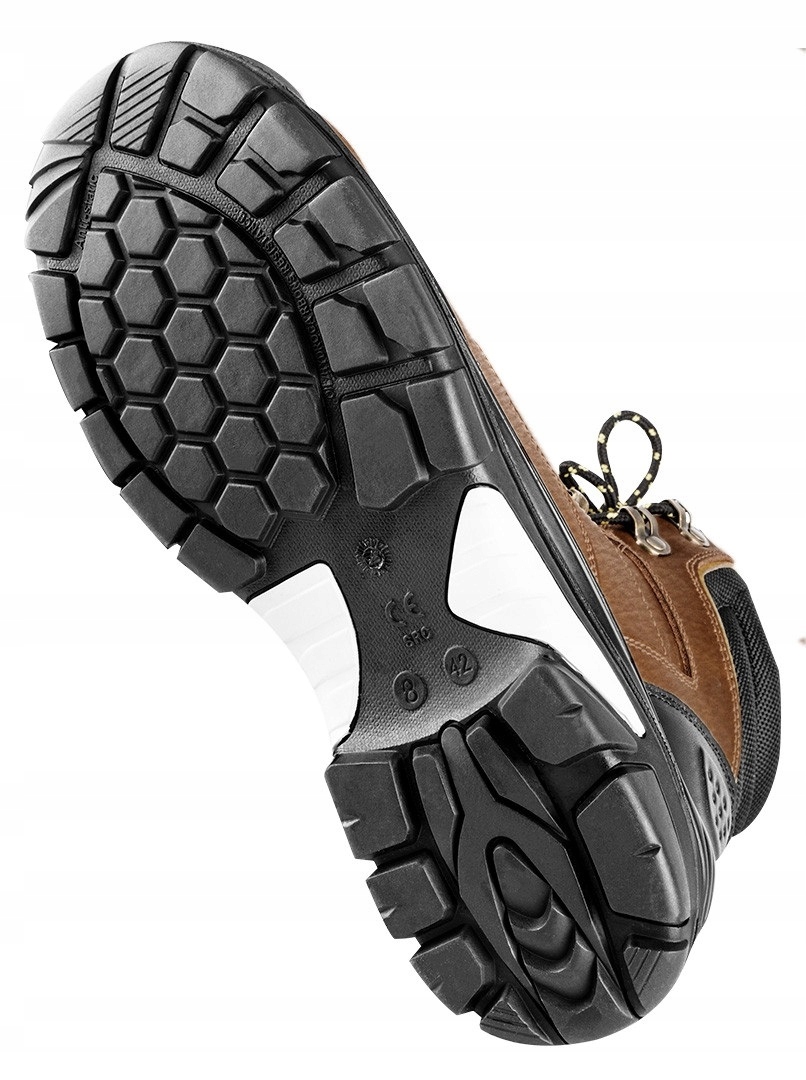 в рабочей обуви изготовлена двухматериальная верхняя часть из кожи crazy horse и ткани ofxord экстремального качества. Кроме того, конструкция была усилена кевларовой подошвой против проколов,профилированным задником, усиленной пяткой и прочными одиночными и двойными швами. Стелька, предназначенная для обуви, обладает проницаемостью и водопоглощением, которая соответствует стандартам EN ISO 20345 - согласно классификации безопасной обуви.