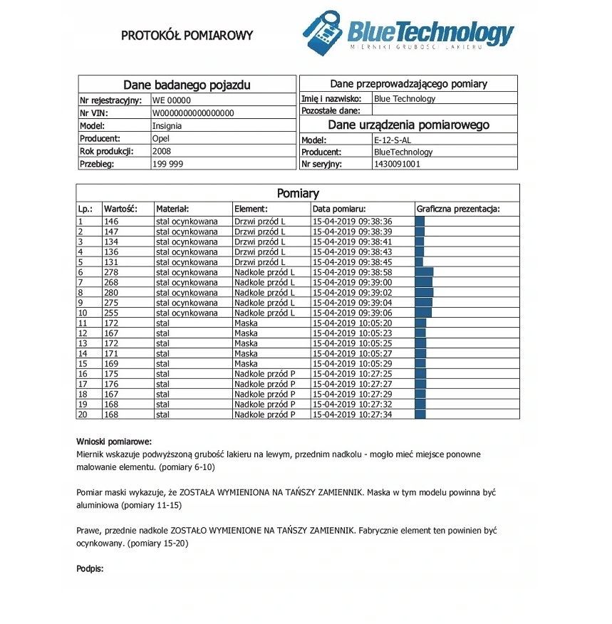 Компьютерные отчеты измерений позволяют нам вздохнуть с облегчением при архивирования измерительной многих автомобилей. Память более 1000 измерений, разделенных на 10 каталогов, определенно облегчит работу для профессионалов. Зонд на проводе 80 см позволяет достичь самых сложных мест, таких как амортизаторы или контакт между стойкой и балкой, а встроенная батарея значительно облегчит работу, особенно в полевых условиях. Светодиодный фонарик позволит измерять даже в сумерках. Режим hold позволит нам после проведенного измерения спокойно сделать снимок, необходимый для архивирования доказательств.п>
