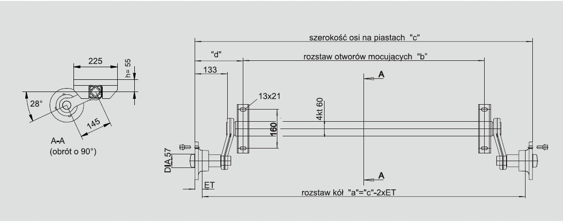 - допустимая / максимальная нагрузка на ось: 750 кг