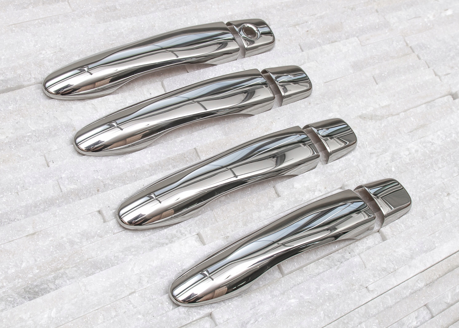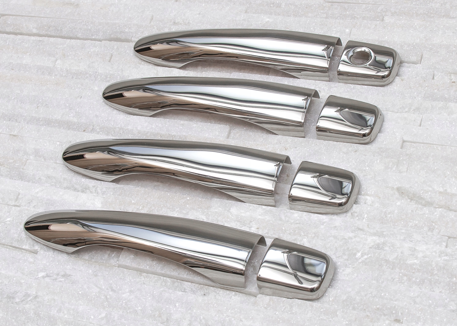 в комплект входит набор из четырех накладок на дверные ручки. Они монтируются с помощью скотча 3М двухсторонней клейкой ленты, прикрепленной к внутренней стороне элементов. Их наносят на обезжиренную поверхность при помощи экстрактивного бензина или спирта, при положительных температурах от 18 ° С. Рекомендуется профессиональная установка.п>
