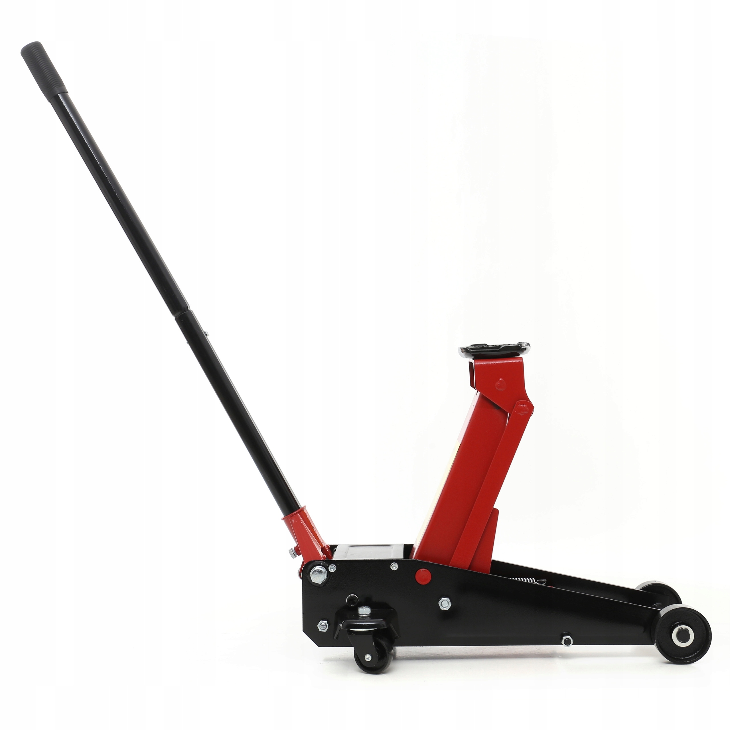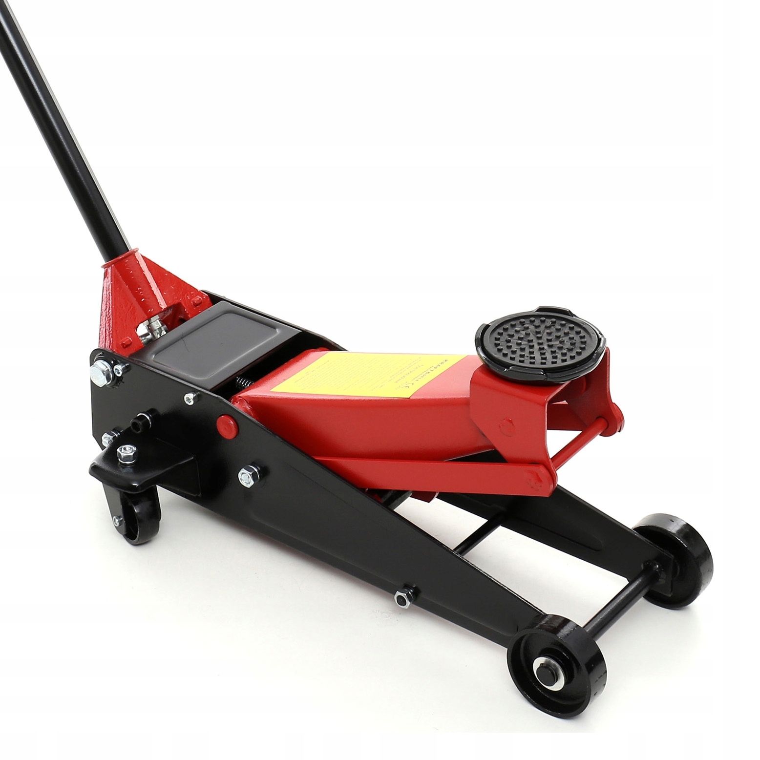 подъемник оснащен широкими стальными колесами передней оси и подшипниковыми рулевыми колесами задней оси.
