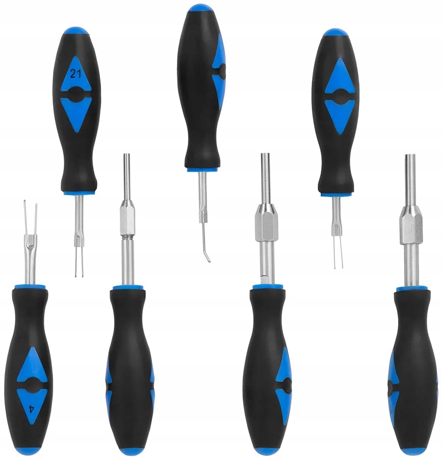 набор инструментов для отсоединения разъемов из 23 предметов подходит практически для всех автомобильных разъемов. Наденьте соответствующий инструмент разблокировки на конец разблокировки штифта. Инструмент сжимает заусенцы на втулке штифта и, таким образом, ослабляет плотную складку.п>