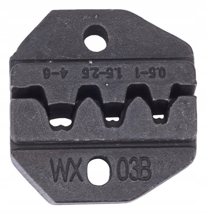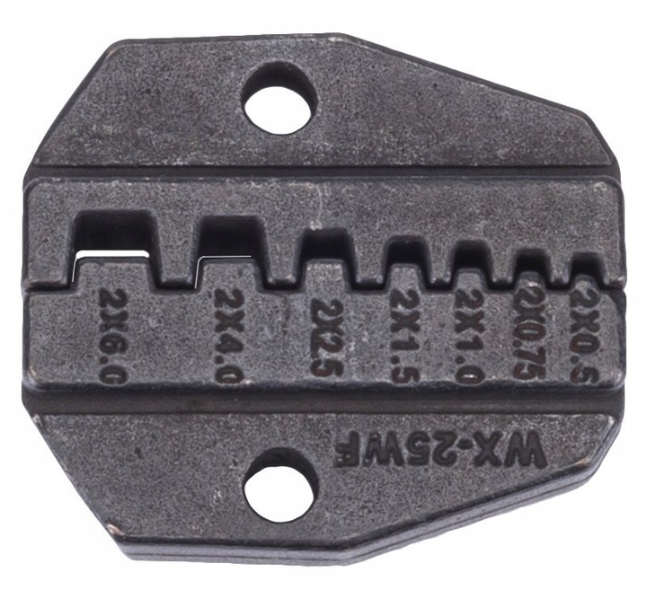 в комплект входят автоматические плоскогубцы с регулируемым храповым механизмом и сменные матрицы, подходящие для пяти видов электротехнических разъемов. Замена штампов осуществляется с помощью отвинчивания двух винтов.