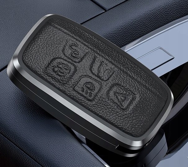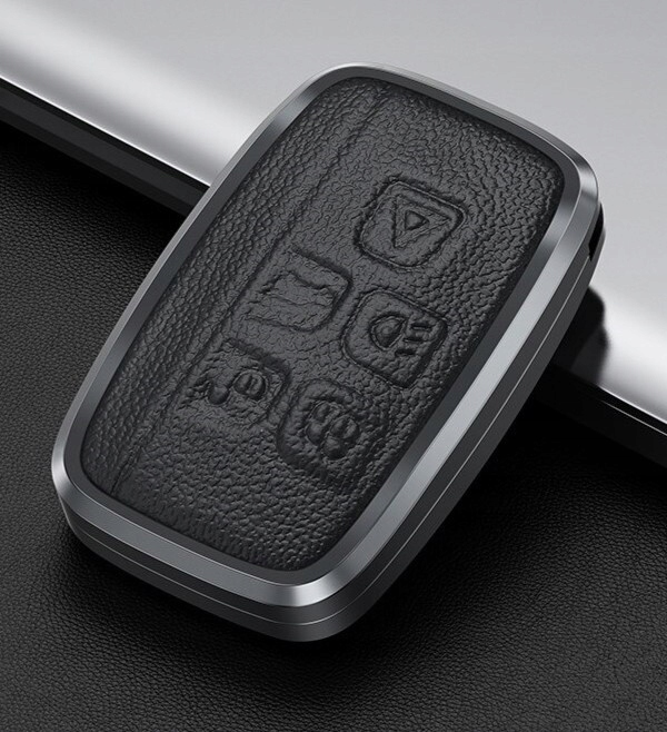 в ассортименте элегантные высококачественные новые алюминиевые чехлы с черными кожаными аксессуарами для ключа Land Rover и JAGUAR 5-кнопочный в версии SMART: