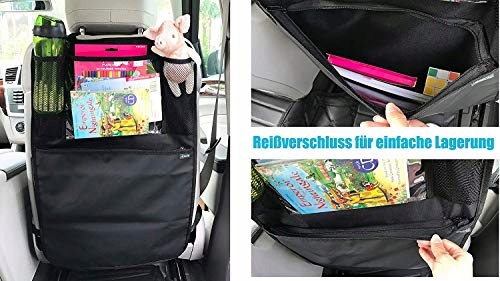 полная защита спинки сиденья: очень большая защита спинки сиденья с отделениями защищает все переднее сиденье от грязи и повреждений, обеспечивая беззаботную езду. Он на 100% водонепроницаем и легко моется, например, влажной тканью.п>
