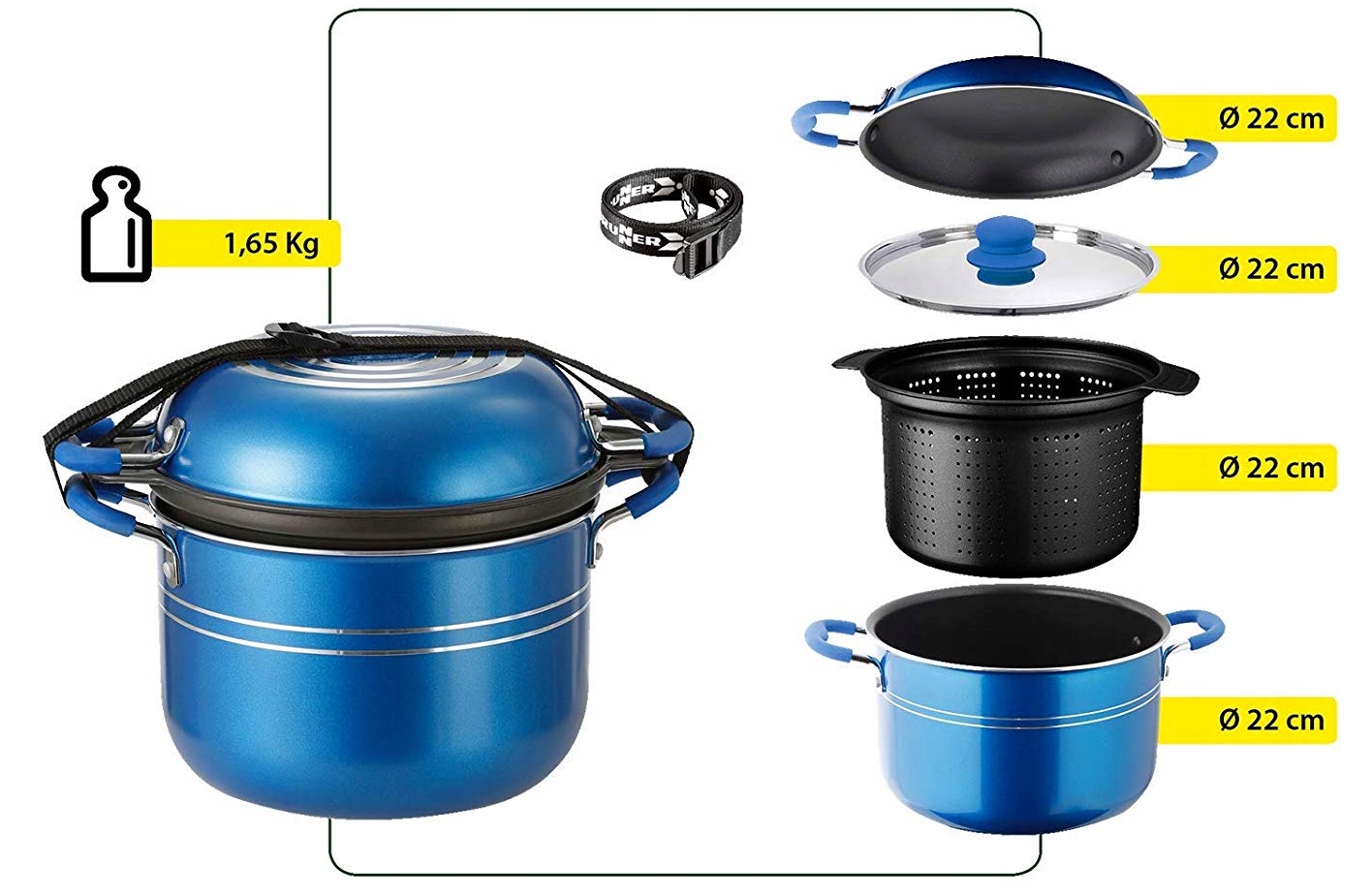 продукт отличается современным дизайном в сочетании с высочайшим качеством исполнения. Он удовлетворит требования даже самых требовательных клиентов. Инновационный дизайн делает набор кастрюль идеально подходит для небольших кухонь в камерах, трейлерах и яхтах. Чрезвычайно легкий вес и небольшие размеры в сложенном виде гарантируют экономию места в шкафах и позволяют брать горшки в рюкзаке для кемпинга, пикника или участка. Их можно использовать и в домашнем хозяйстве.