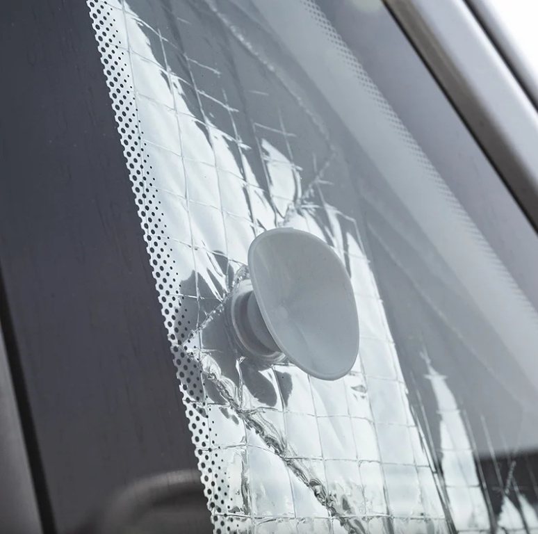 не тяните за тепловую перегородку, когда вынимаете ее из окна, но не забудьте осторожно вынуть присоски. Это сделано для того, чтобы ткань не порвалась вокруг металлических сеток.