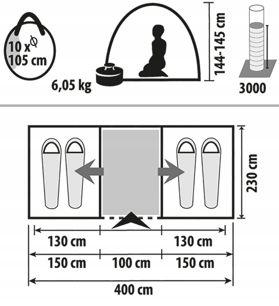 материал пола: 100% полиэтилен, спальная кабина: 100% полиэстер