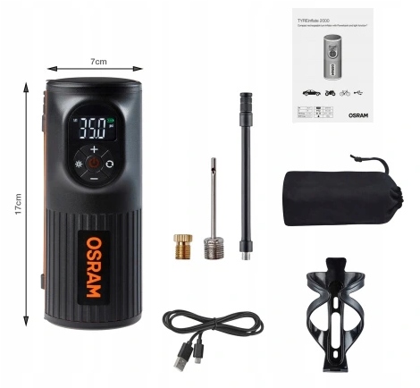 OSRAM TYREinflate 2000 - это перезаряжаемый шинный насос с цифровым дисплеем с подсветкой для более простых и точных измерений давления и накачки шин, который отображает значения давления в бар, кПа и PSI.
