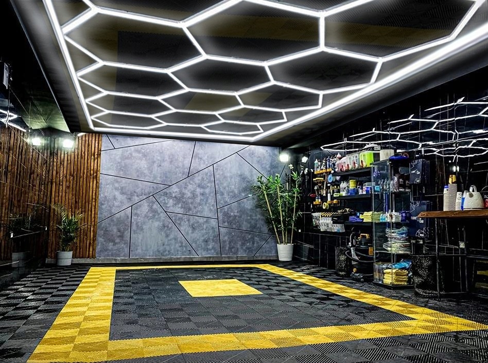 модульная система освещения, гаражная мастерская, HEXAGON LED 243 x 483 см, холодный цвет 6000K