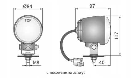 рабочая лампа H3 с держателем Wesem Ø84x97 с проводом и разъемом amp Faston.