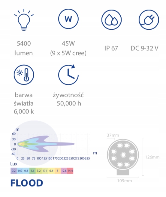 мощность: 45 Вт (9x5 Вт cree)