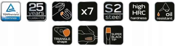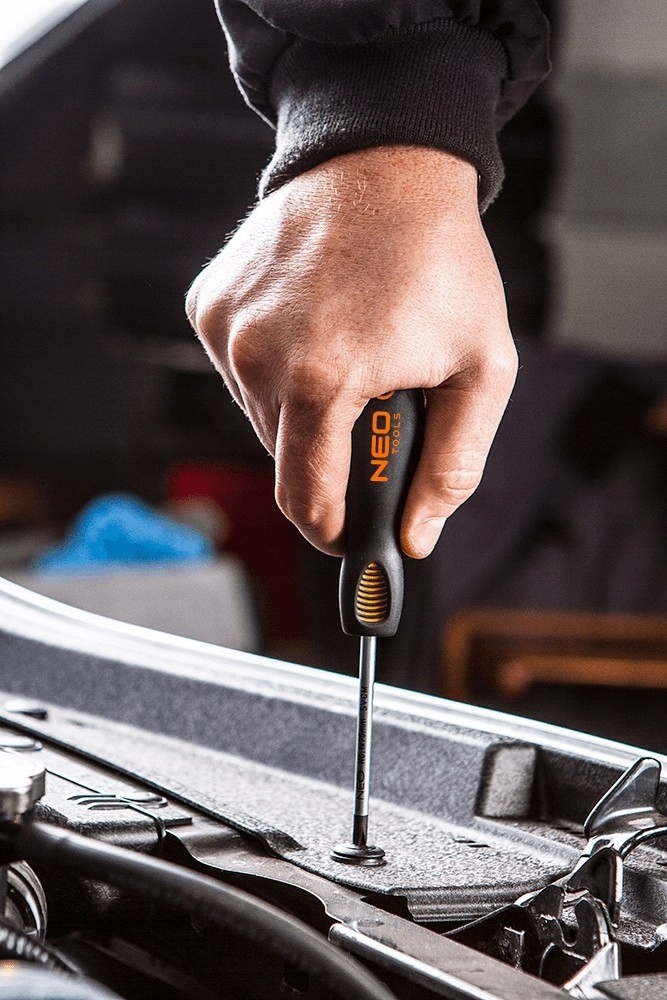 В набор отверток NEO входят 7 отверток: плоская и крестовая. Наконечник отвертки изготовлен из чрезвычайно прочной стали S2. Рабочий кончик насадки прошел термообработку, в результате чего была получена необходимая твердость и устойчивость к изгибу. Отвертка имеет магнитный наконечник. Треугольная форма рукоятки с профилированным упором для большого пальца снижает нагрузку на руку во время работы и способствует получению оптимального крутящего момента. Ручка из двойного материала предотвращает скольжение в руке и устойчива к химическим веществам, маслам и жирам. Качество инструмента подтверждено 25-летней гарантией производителя. Бренд NEO оправдывает ожидания профессионалов.