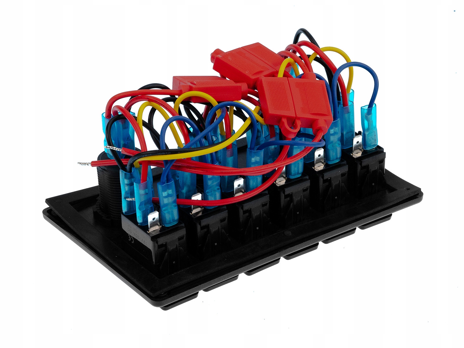 водонепроницаемая электрическая панель с 6 выключателями, двойной USB-разъем, прикуриватель и вольтметр. Каждый выключатель защищен предохранителем 15а. вольтметр контролирует напряжение в режиме реального времени в диапазоне 0-24 В. панель может быть установлена вертикально или горизонтально.