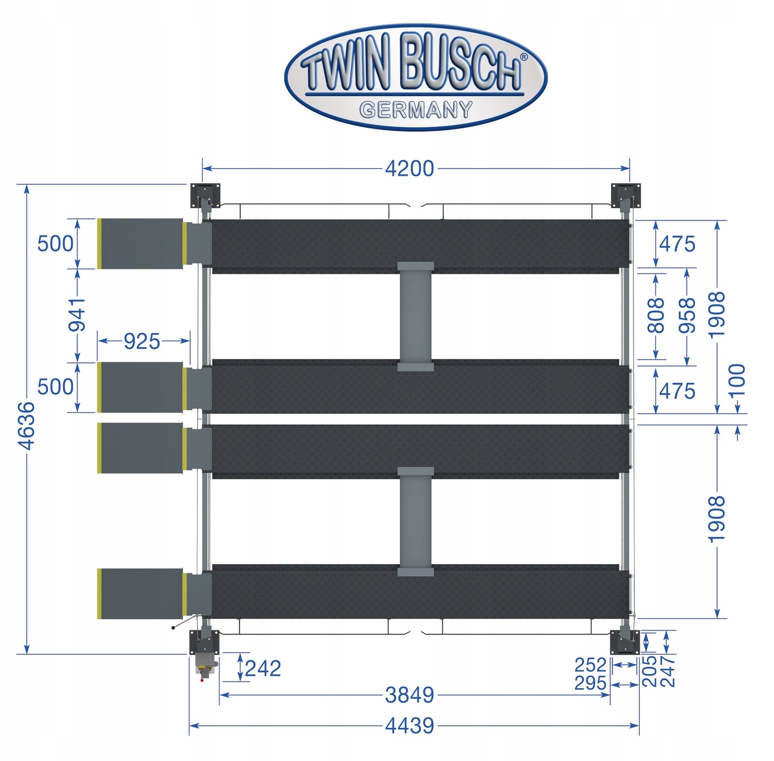 Четырехстоечный двойной парковочный подъемник TW 436P-D2-G GREY – Line