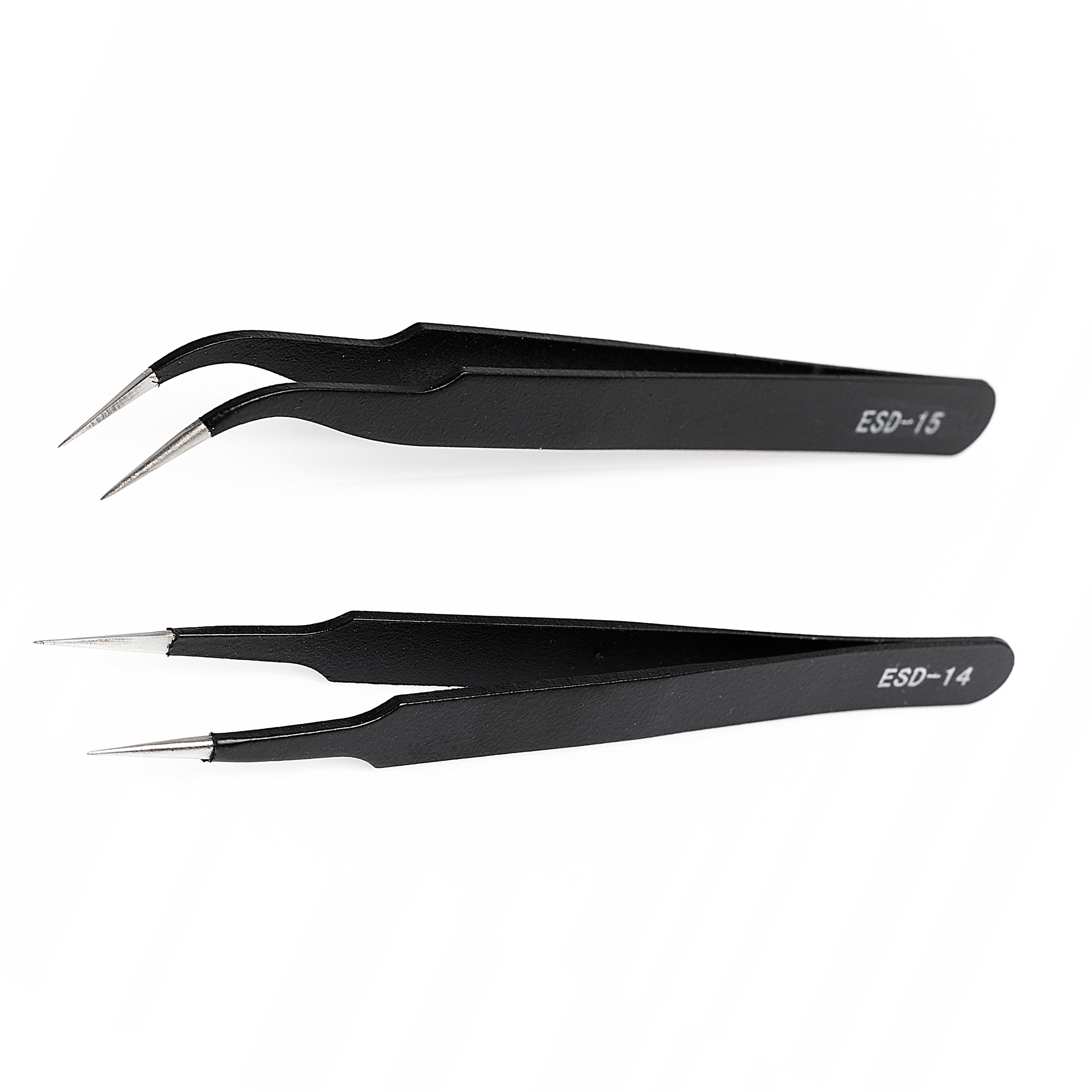 Пинцеты для электроники, антимагнитные, антистатические, кислотостойкие и нержавеющие. Высокое качество, очень острые, закаленные кончики. Рабочая часть точно отшлифована. Лишенный магнитных свойств, металлические элементы и остатки олова не прилипают, идеально подходит для элементов, чувствительных к магнитным полям. Работа точная и приятная. Пинцет гладко отполирован в рукоятке.