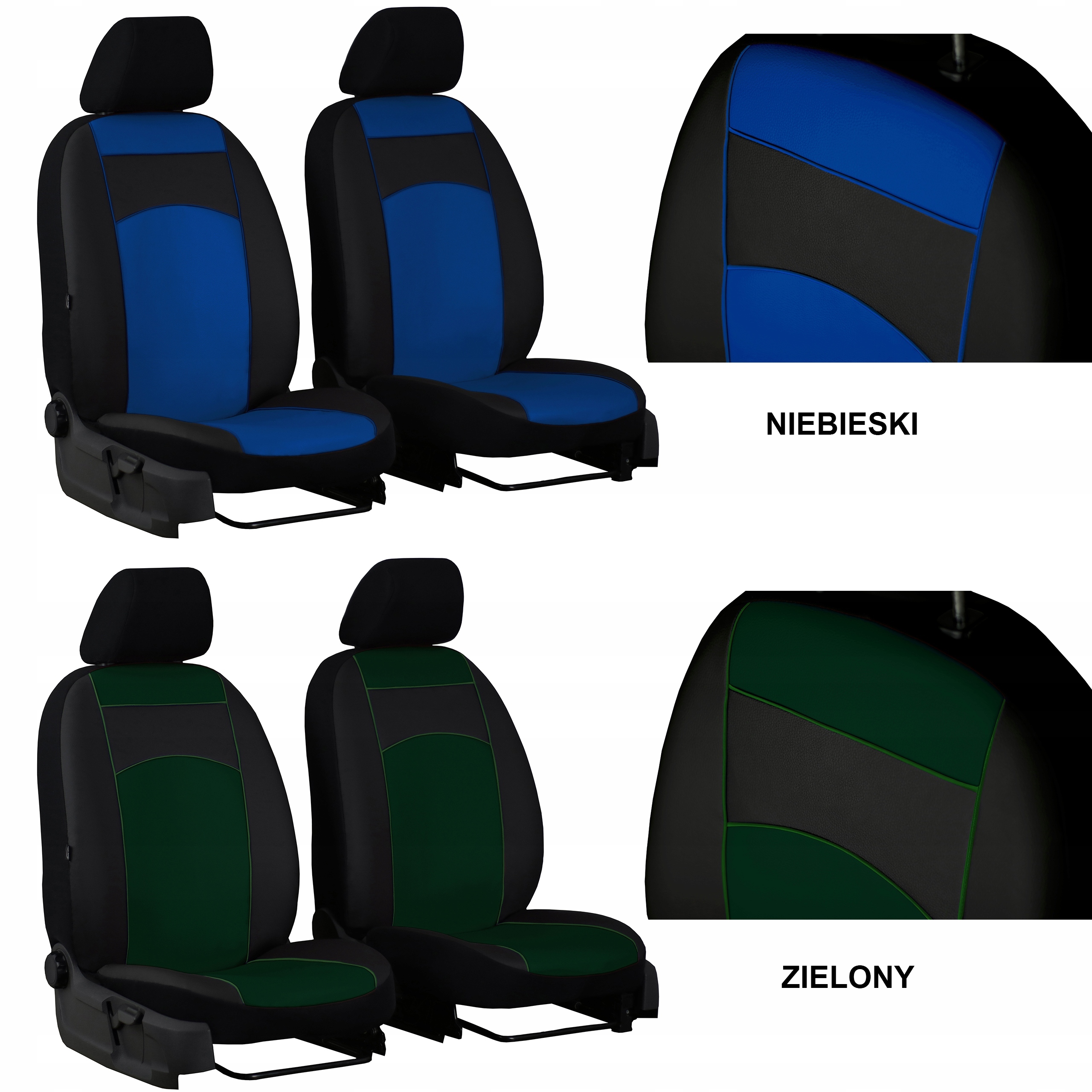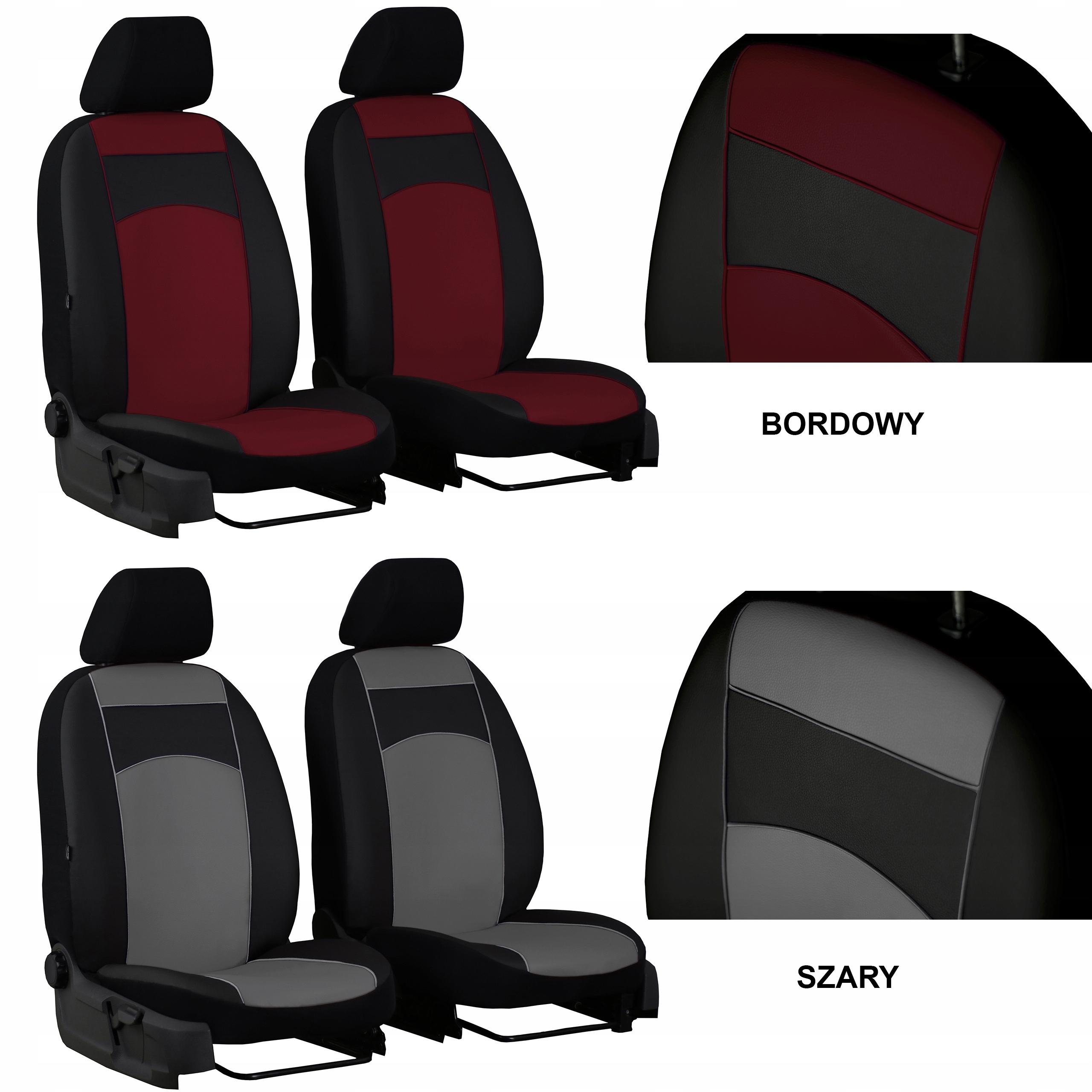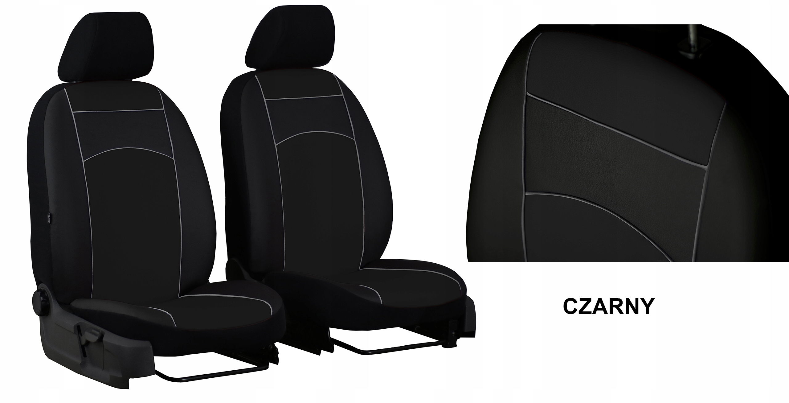 Наши СТАНДАРТНЫЕ КОЖАНЫЕ чехлы полностью закрывают сиденья. Передняя часть (спинка и сиденье) изготовлена из экологической кожи. Спинка, подголовники и боковая отделка выполнены из прочного черного материала. Благодаря такому решению оригинальная обивка сидений защищена от повреждений и загрязнений в самых открытых местах.