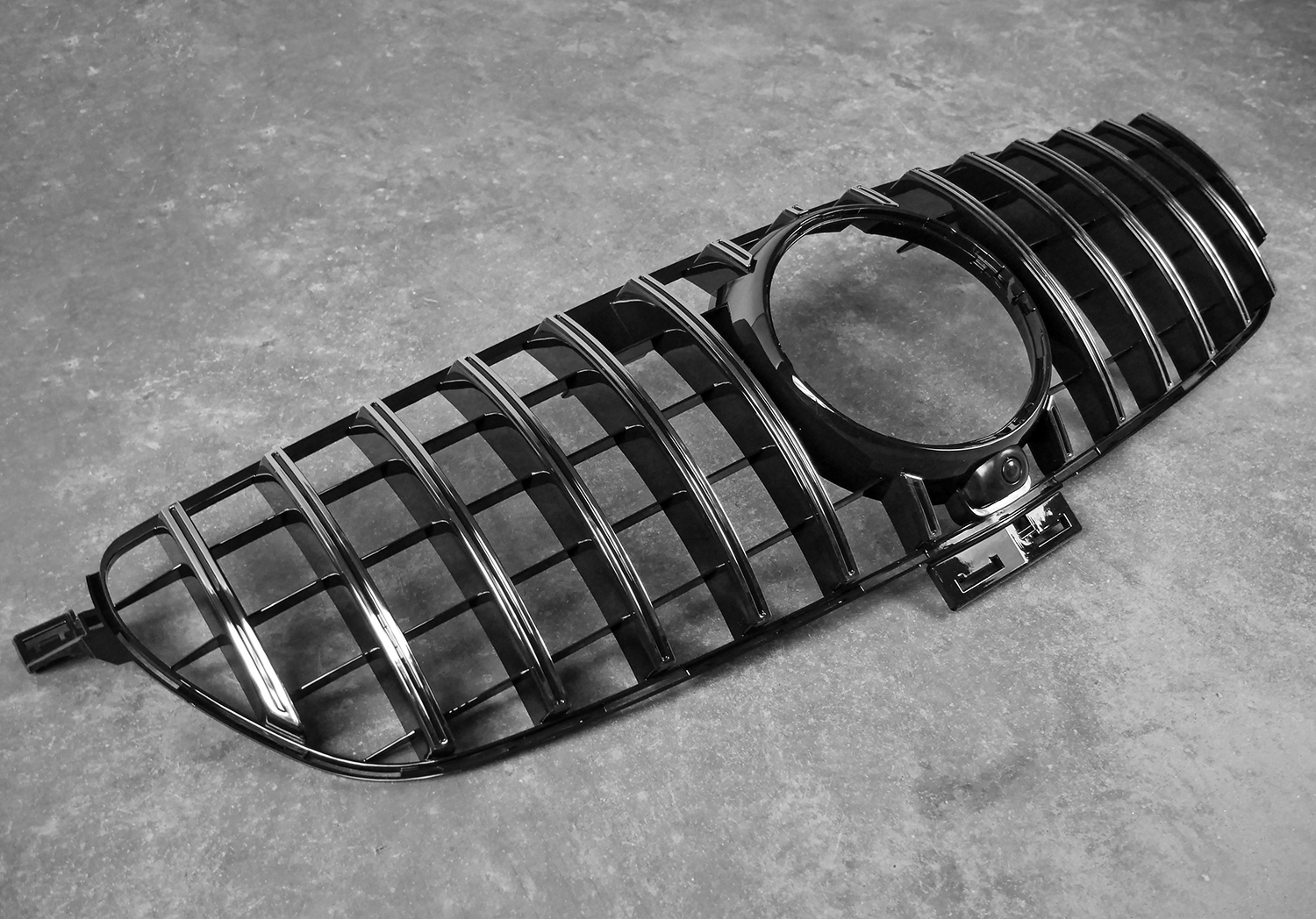 передняя решетка, стилизованная под модели Mercedes AMG GTR Panamericana изготовлена из чрезвычайно прочногоАБС-пластика , стойкого к атмосферным воздействиям . Гриль идеально подходит вместо старого манекена ,его сборка не требует каких-либо изменений.специальные элементы настройки позволяют добавить элегантности, придавая автомобилю уникальный спортивный вид.