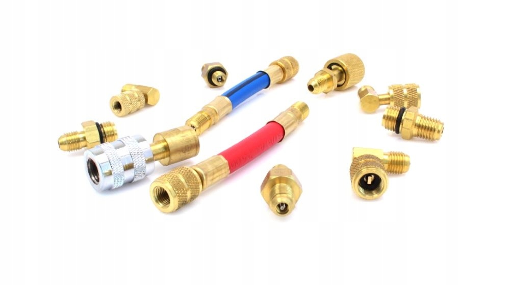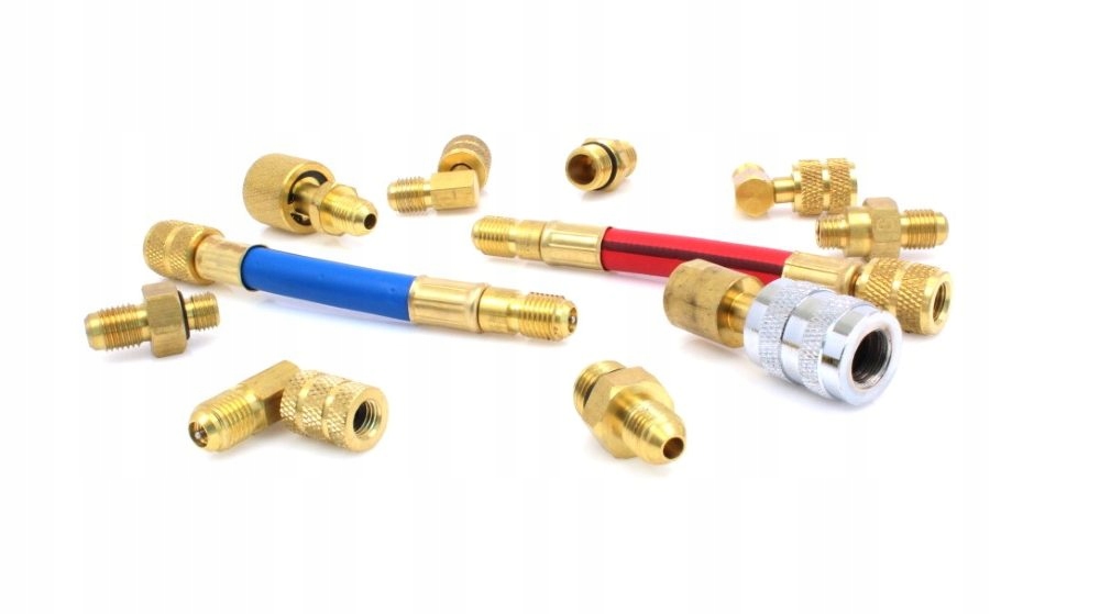 комплект адаптеров, редукторов и шлангов для систем кондиционирования воздуха с использованием хладагента R134a или R12.