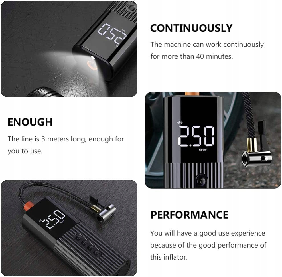 высокоэффективный цикл из чистой меди более чем в 5000 раз превышает четыре параметра накачки. После установленного значения давления в шинах он накачивает одним ключом. Когда он peny он автоматически остановит si умный и компактный цифровой вентиляционный вентилятор, который делает e более интуитивно понятным. чтобы шины выдерживали низкий уровень шума. Zupeне новый и хороший какот надежный и практичный.п>