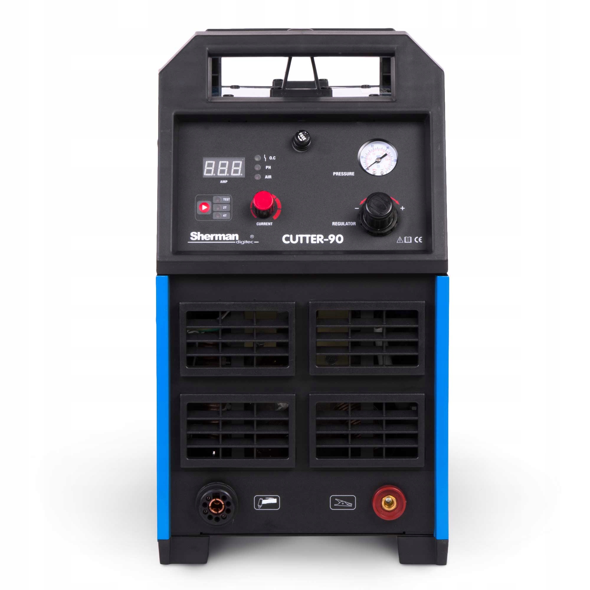 Cutter 90 относится к новой серии оборудование, изготовленное по технологии IGBT 200 кГц для плазменной резки листового металла и элементов из стали, алюминия и меди. Оборудование рекомендуется в основном для профессионалов в учреждениях с большим использованием процессы резки. Применяется в закрытых помещениях или крытых, не подверженных непосредственному воздействию атмосферных воздействий. Устройство имеет ручку 6м стандарта TRAFIMET с ионизационным освещением HF пилотной дугой и встроенный блок подготовки воздуха с редуктором и манометром позволяет регулировать и контролировать давление воздуха с панели управления. Он оснащен переключателем 2T/4T и функцией TEST для проверки и очистка воздушной установки.п>