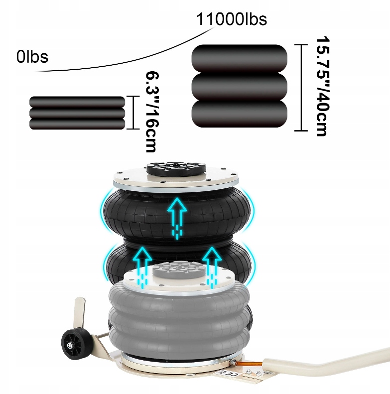 грузоподъемность- производительность воздушного подъемника достигает 6600lbs / 3T.и это диапазон высоты подъема: 5,9-15,75". Подъем занимает всего 5 секунд. Рабочая температура: -60 ℃ ~ 50 ℃.