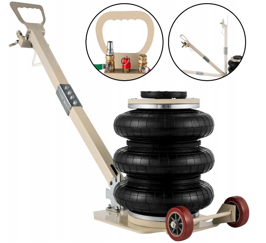 простое использование - эффективный и очень быстрый в использовании. Тройной домкрат - самый простой и быстрый способ поднять автомобиль. Он наполняется сжатым воздухом.