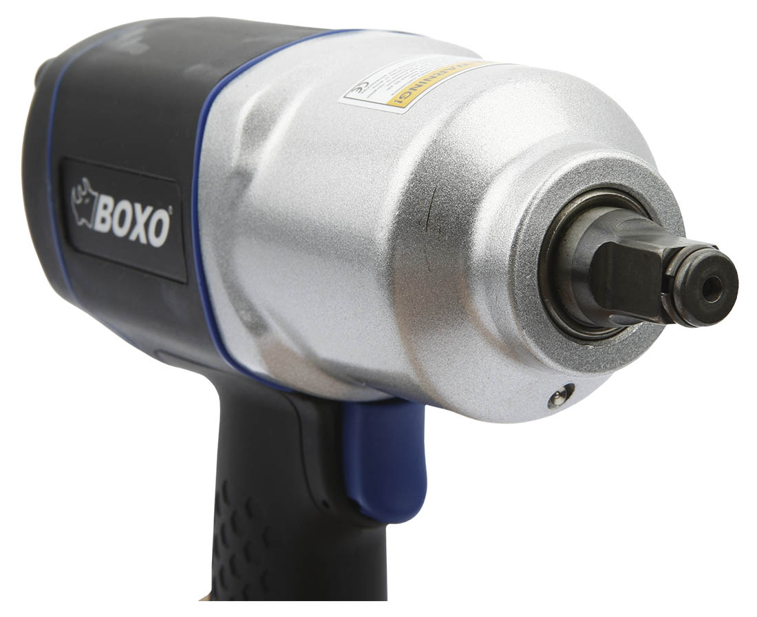пневматический ключ от Boxo-это устройство, готовое к действительно тяжелой работе! Корпус механизма выполнен из легкого и прочного алюминия. Композитная ручка отделана резиновой оболочкой, благодаря которой она идеально лежит в руке и не повреждается даже после длительного использования.п>