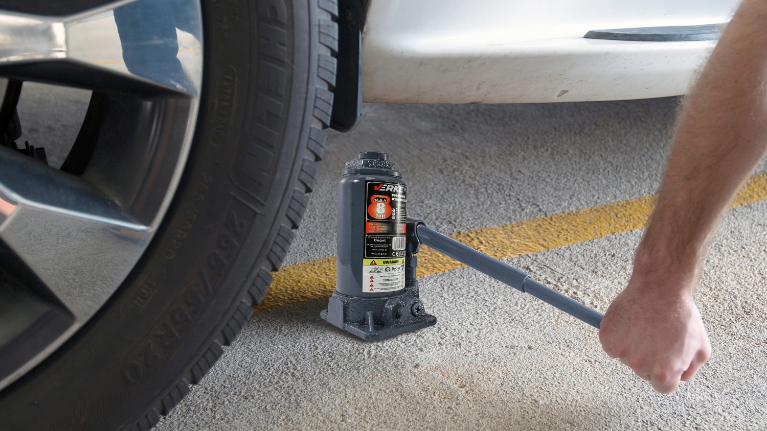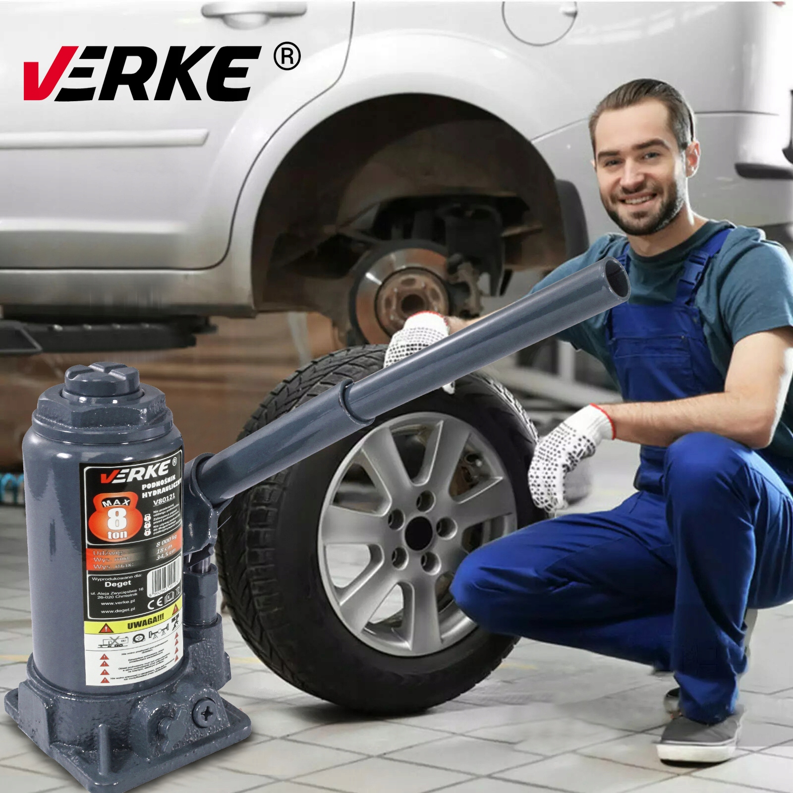 гидравлический домкрат verke с максимальным подъемным весом 8Т. его прочная конструкция обеспечивает долговечность и безопасность, а небольшие габариты гарантируют легкость в использовании и надежность каждому водителю. Кроме того, отжимная ножка в поршне подъемника имеет прочную трапециевидную резьбу, устойчивую к перегрузке и гарантирующую плавную работу. Он найдет применение в любой мастерской, а также является прекрасным дополнением к оборудованию гаража.п>