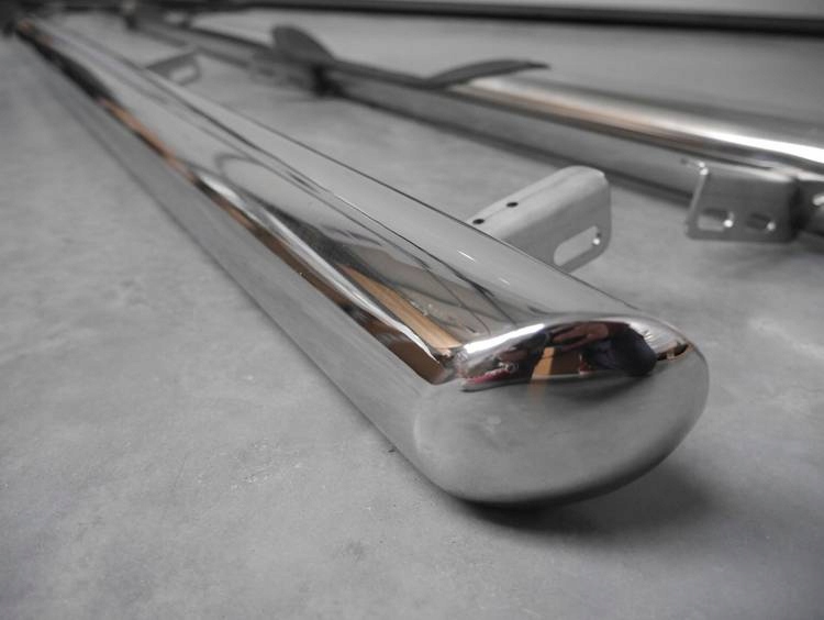 Боковые трубы из нержавеющей стали. Имеет углубления, заполненные АБС-пластиком. Полированная отделка трубы диаметром 80 мм.
