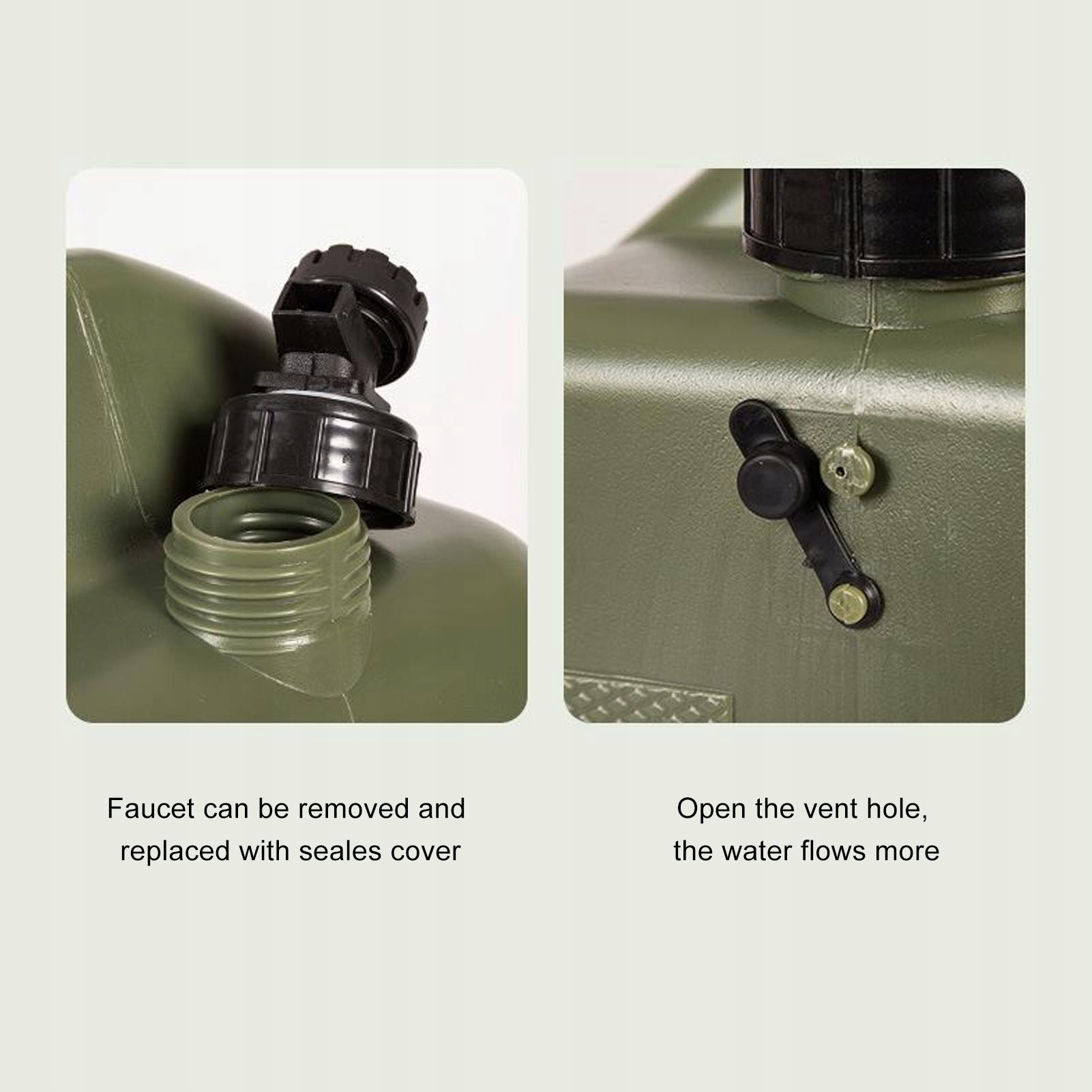 Характеристика: 1. Прочный и надежный: 18-литровый походный контейнер для воды изготовлен из полиэтилена премиум-класса, что обеспечивает его долговечность и надежность для использования на открытом воздухе, а также надежность для обеспечения качества питьевой воды.
