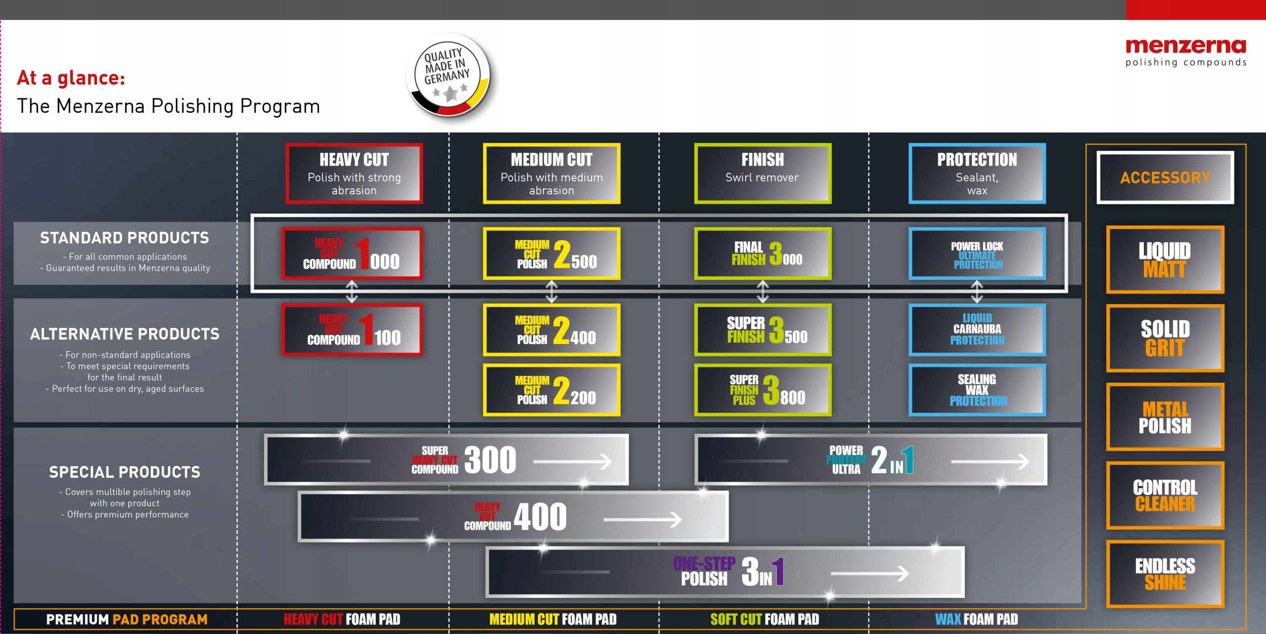 Menzerna 3in1 one - step polish-уникальная паста, которая удаляет царапины среднего размера, завершает поверхность до полного блеска и обеспечивает длительную защиту лака. Состав состоит из высококачественных абразивных микрочастиц и инновационной смеси восков. После применения menzerna 3in1 мы получим лак без царапин с идеальным блеском, который будет долго защищен от воздействия вредных факторов окружающей среды. Нанесенное покрытие также обеспечивает гидрофобный эффект и предотвращает прилипание грязи. Менцерна 3в1 сохраняет свои защитные свойства до 3 месяцев.