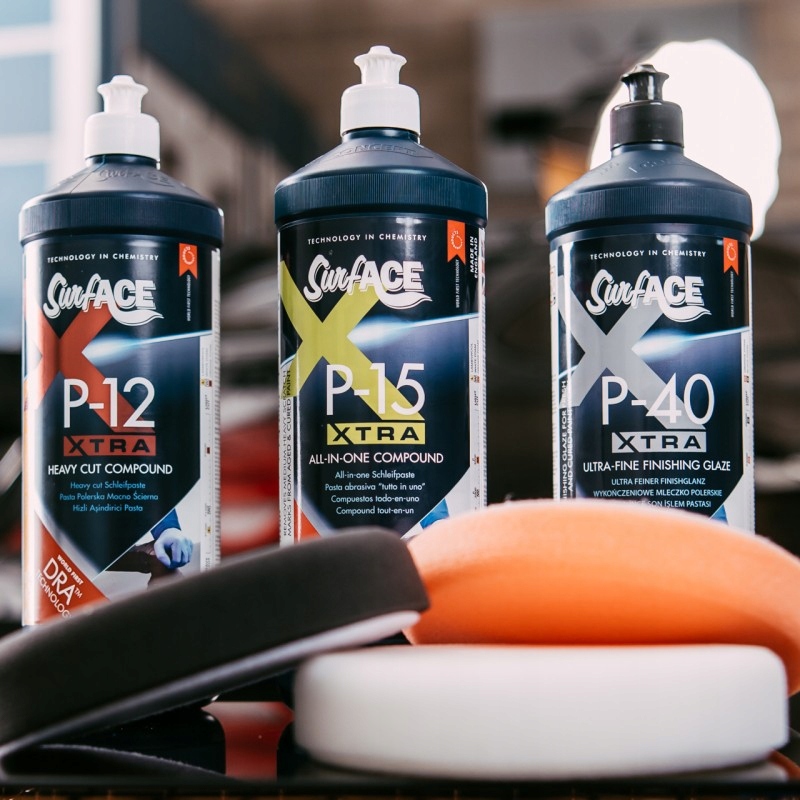SurfACE P-12 Xtra Heavy Cut с уникальной технологией DRA™ (Dynamic Response Abrasion), содержащей микроточные оксиды, быстро и легко удаляет дефекты лака и гелькоута.