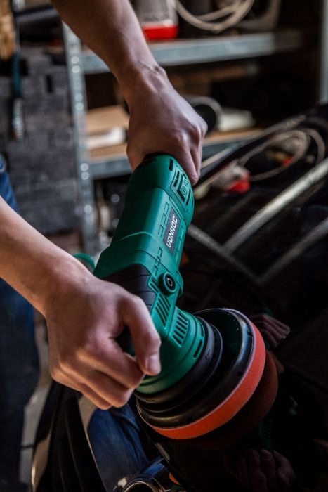 этот полировщик оснащен системой регулировки оборотов, безопасного запуска и функцией поддержания мощности на низких оборотах при сильном нажатии на машину. Благодаря этому даже при большой длительной нагрузке полировщик обеспечивает одинаковый эффект на всей полированной поверхности. Благодаря системе регулировки оборотов вы сами сможете идеально подогнать инструмент под любой вид работы!