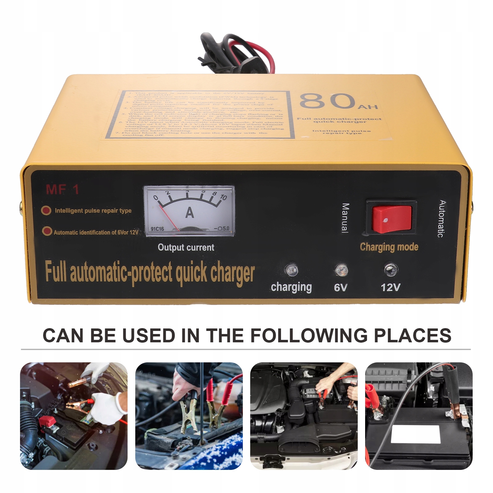 особенности: применимо к батарее 6 В или 12 В. пиковый ток составляет 5 а; автоматические и ручные режимы зарядки, более надежные и безопасные; сигнальные огни показывают состояние заряда и обслуживания батарей; интеллектуальный охлаждающий вентилятор, который помогает быстро рассеивать тепло в течение длительного срока службы жизнь.