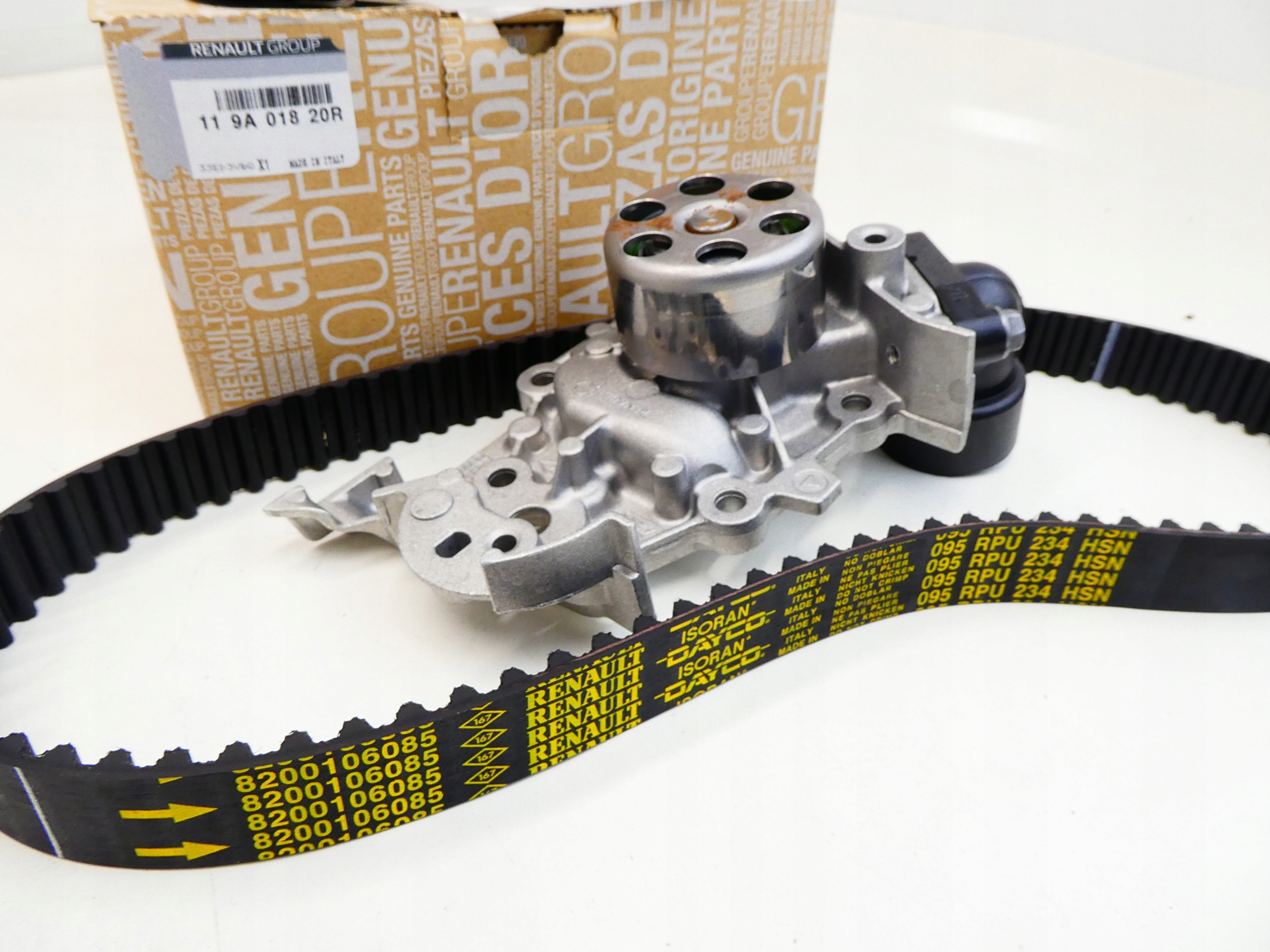 оригинально, абсолютно новый комплект оригинального ГРМ с водяным насосом. ОРИГИНАЛ RENAULT.