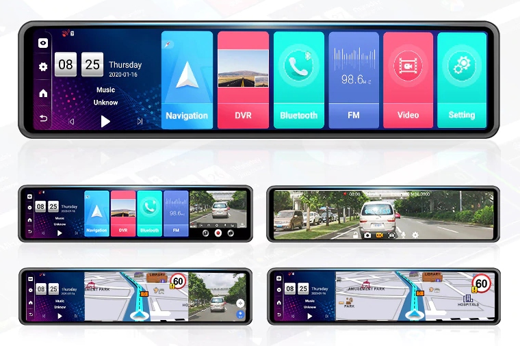 > сенсорный экран в емкостной технологии по всей поверхности зеркала.в четыре раза больше диапазона обзора по сравнению с традиционным зеркалом заднего вида. вместо внешних крошечных кнопок, которые всегда ошибаются, управление с четкими, большими и интуитивно понятными значками сенсорного экрана.