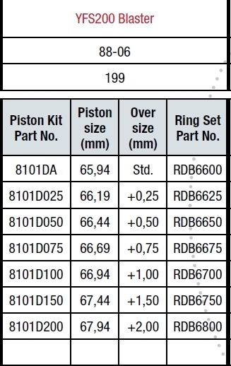 таблица размеров поршня (over size) для размеров поршня (piston size):
